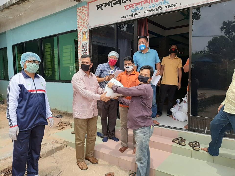 করোনা মহামারীর প্রাদুর্ভাব মোকাবেলায় মাননীয় প্রধানমন্ত্রীর উপহার সামগ্রী পৌর এলাকায় বসবারত জনগণের মাঝে সামাজিক দূরুত্ব বজায় রেখে ও ঘরে ঘরে ত্রাণ পৌঁছেদেন পৌর এলাকার রূপকার জনাব রফিকুল আলম, মেয়র, খাগড়াছড়ি পৌরসভা।