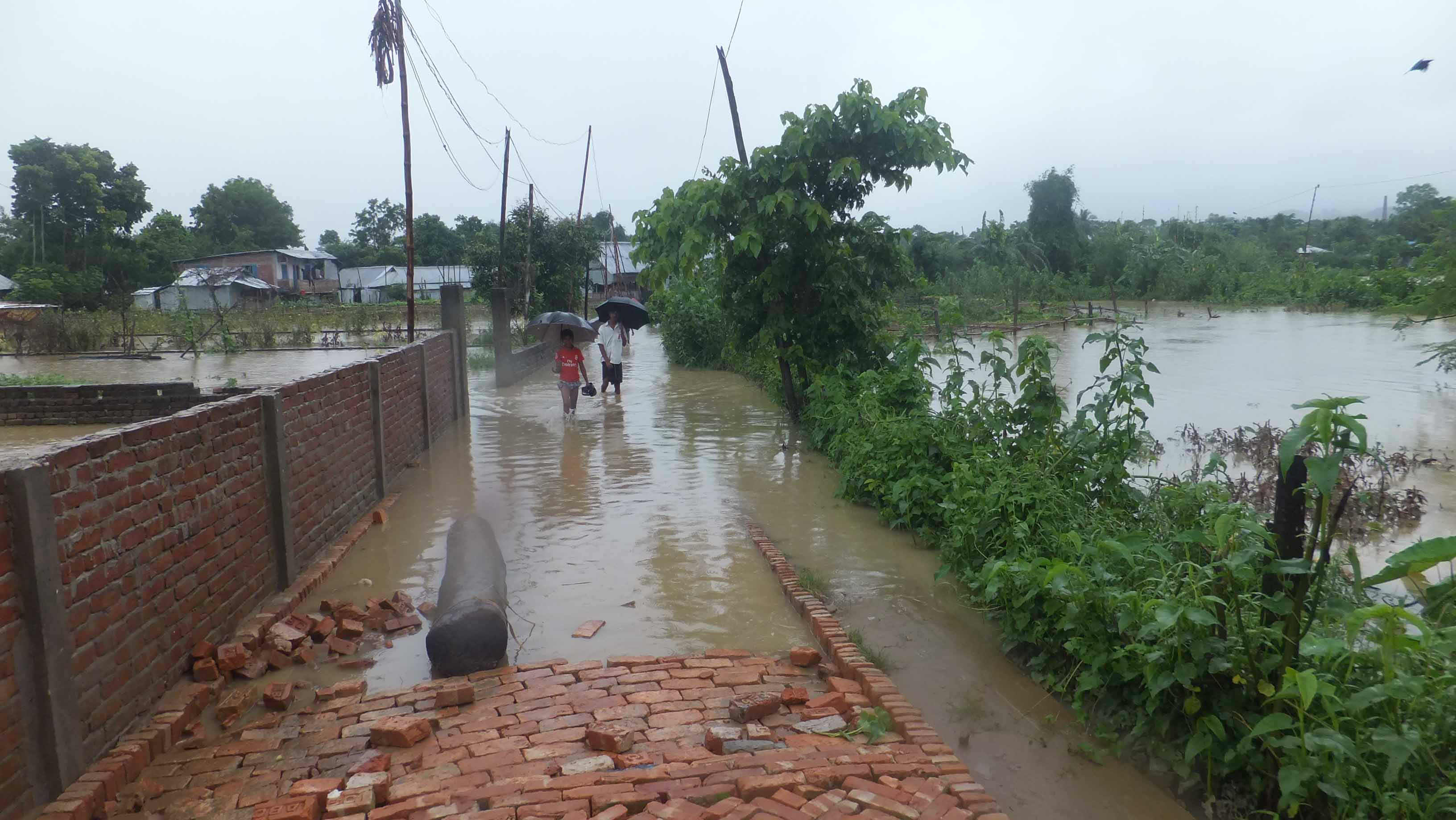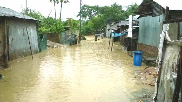খাগড়াছড়ি পৌরসভার বণ্যাকবলিত এলাকার দৃশ্য