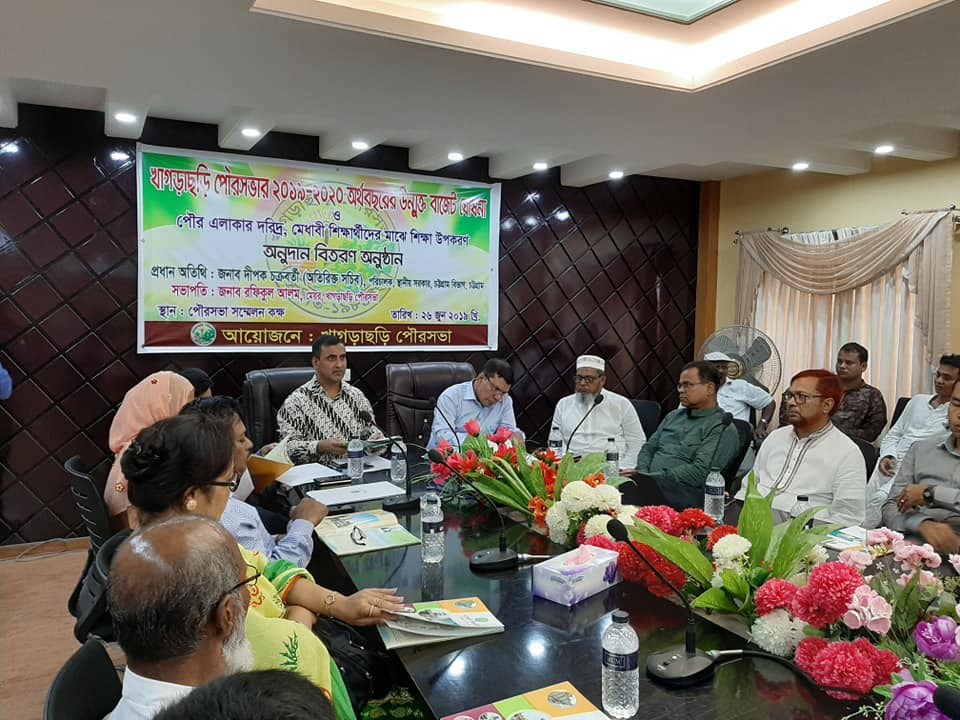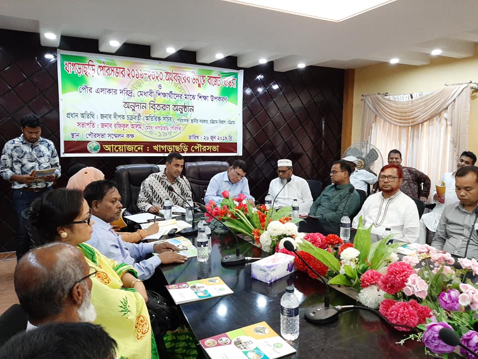 খাগড়াছড়ি পৌরসভার ২০১৯-২০২০ অর্থ বছরের উন্মুক্ত বাজেট ঘোষণা। উক্ত দিনে পৌর এলাকার দরিদ্র, মেধাবী শিক্ষার্থীদের মাঝে শিক্ষা উপকরণ ও নগদ অর্থ অনুদান বিতরণ করা হয়। বাজেট ঘোষণা অনুষ্ঠানে প্রধান অতিথি হিসেবে উপস্থিত ছিলেন দীপক চক্রবর্তী, (অতিরিক্ত সচিব), পরিচালক, স্থানীয় সরকার, চট্টগ্রাম বিভাগ, চট্টগ্রাম।