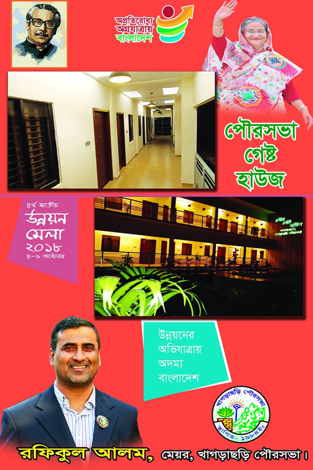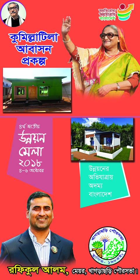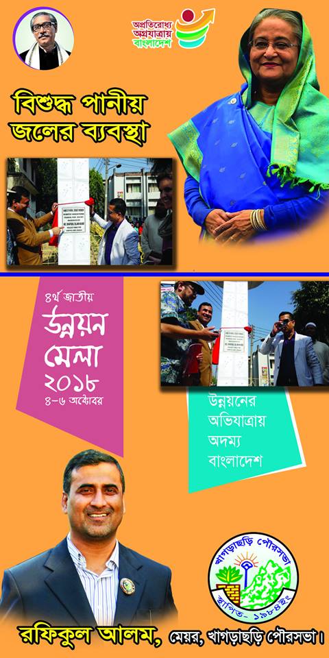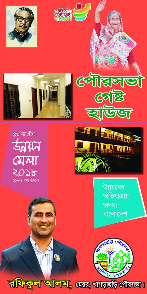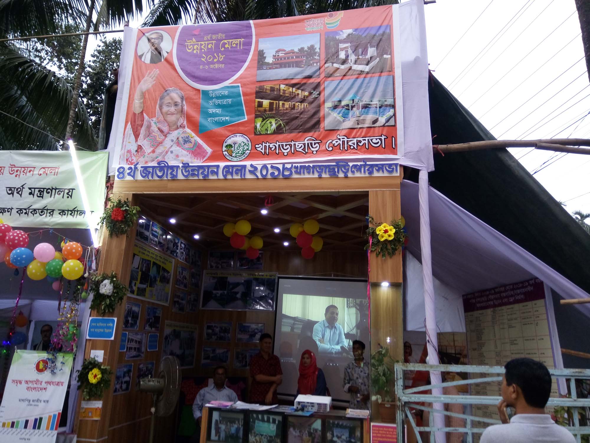 ৪র্থ জাতীয় উন্নয়ন মেলা-২০১৮ তে খাগড়াছড়ি পৌরসভার স্টল ও পরিদর্শনের কিছু চিত্র। মেলা উপলক্ষ্যে সরকারের বিভিন্ন উন্নয়ন কর্মকান্ড ও পৌর সভার উন্নয়ন কর্মকান্ড মেলার স্থলে এবং পৌর এলাকার চেঙ্গী স্কোয়ার হতে কলাবাগান মোড় পর্যন্ত পোস্টার, ব্যানার ও কাঠের ফ্রেমে ফেস্টুন আকারে প্রচার করা হয়। মেলায় প্রথম স্থান অর্জন করেন খাগড়াছড়ি পৌরসভা।