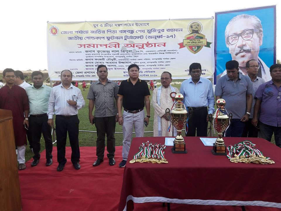 যুব ও ক্রীড়া মন্ত্রণালয়ের উদ্যোগে জেলা পর্যায়ে জাতির পিতা বঙ্গবন্ধু শেখ মুজিবুর রহমান জাতীয় গোল্ডকাপ ফুটবল টুর্নামেন্ট (অনূর্ধ্ব-১৭) ফাইনাল খেলায় খাগড়াছড়ি পৌরসভা প্রতিপক্ষ কে ৫-০ ব্যবধানে হারিয়ে চ্যাম্পিয়ন হয়েছে।