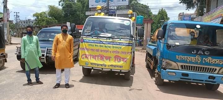 পবিত্র ঈদুল আযহা উপলক্ষে পশু কোরবানির বর্জ্য অপসরণ করছেন খাগড়াছড়ি পৌরসভার কঞ্জারভেন্সী শাখা ও বর্জ্য অপসরণ মোবাইল টিম।
