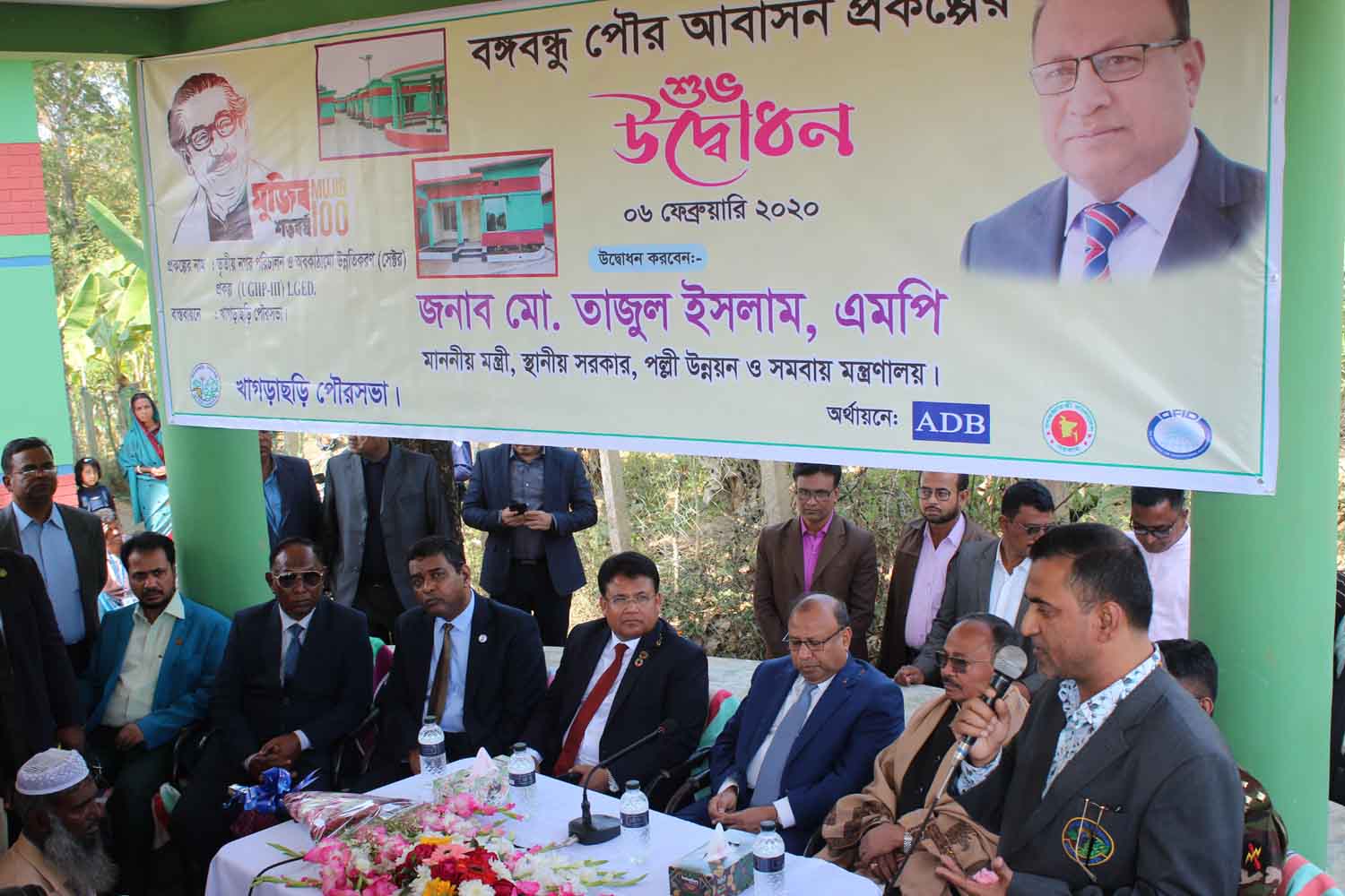 গণপ্রজাতন্ত্রী বাংলাদেশ সরকারের স্থানীয় সরকার পল্লী উন্নয়ন ও সমবায় মন্ত্রণালয়ের মাননীয় মন্ত্রী জনাব মো. তাজুল ইসলাম, এমপি, মহোদয় UGIIP-III প্রকল্পের অর্থায়নে খাগড়াছড়ি পৌরসভা কর্তৃক বাস্তবায়িত বঙ্গবন্ধু পৌর আবাসন প্রকল্প উদ্বোধন ও স্যানিটারি ল্যান্ডফিল এর ভিত্তি প্রস্তর স্থাপন এবং পৌর এলাকায় বাস্তবায়নাধীন কাজের অগ্রগতি পর্যালোচনা করেন। তারিখ- ৬ ফেব্রুয়ারি ২০২০ খ্রি.