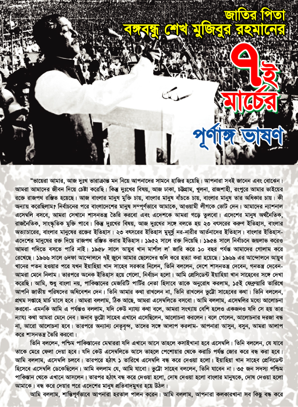 বঙ্গবন্ধুর ৭ই মার্চের পূর্ণাঙ্গ ভাষণ