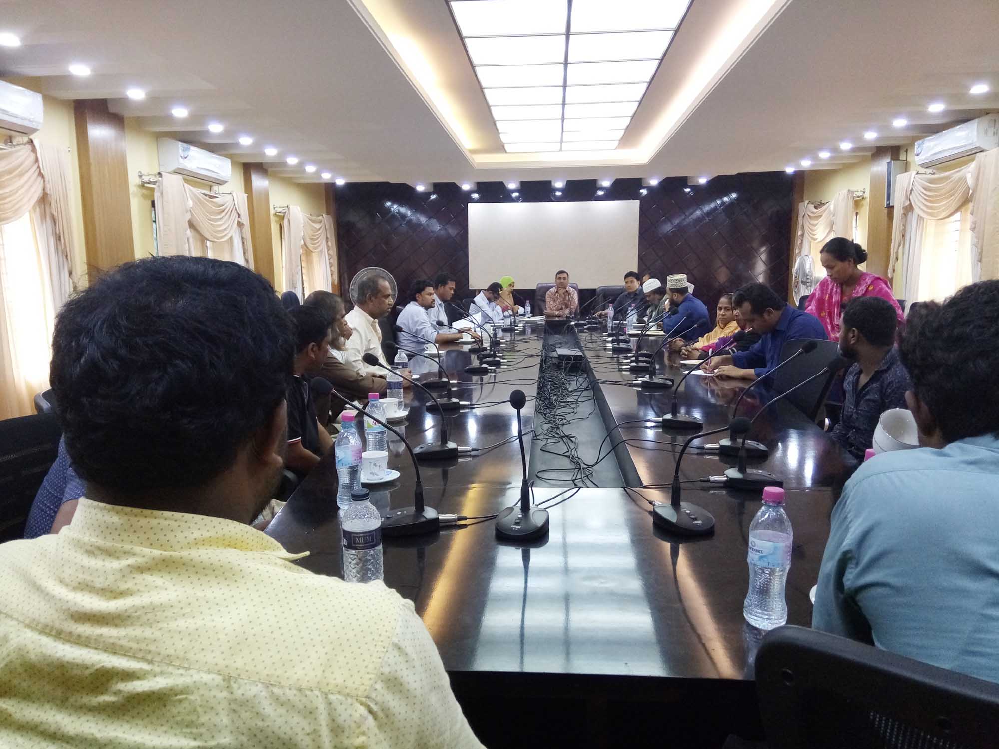 কোরবানির পশু সুনির্দিষ্ট স্থানে জবেহকরণ ও দ্রুত বর্জ্য অসারণ সংক্রান্ত প্রস্তুতি সভা। সভায় উপস্থিত ছিলেন সম্মানিত মেয়র মহোদয়, কাউন্সিলরবৃন্দ, টিএলসিসি সদস্যবৃন্দ, পৌর এলাকার মসজিদের ইমাম ও মোয়াজ্জিন, মাংস ব্যবসায়ী ও কসাইবৃন্দ।